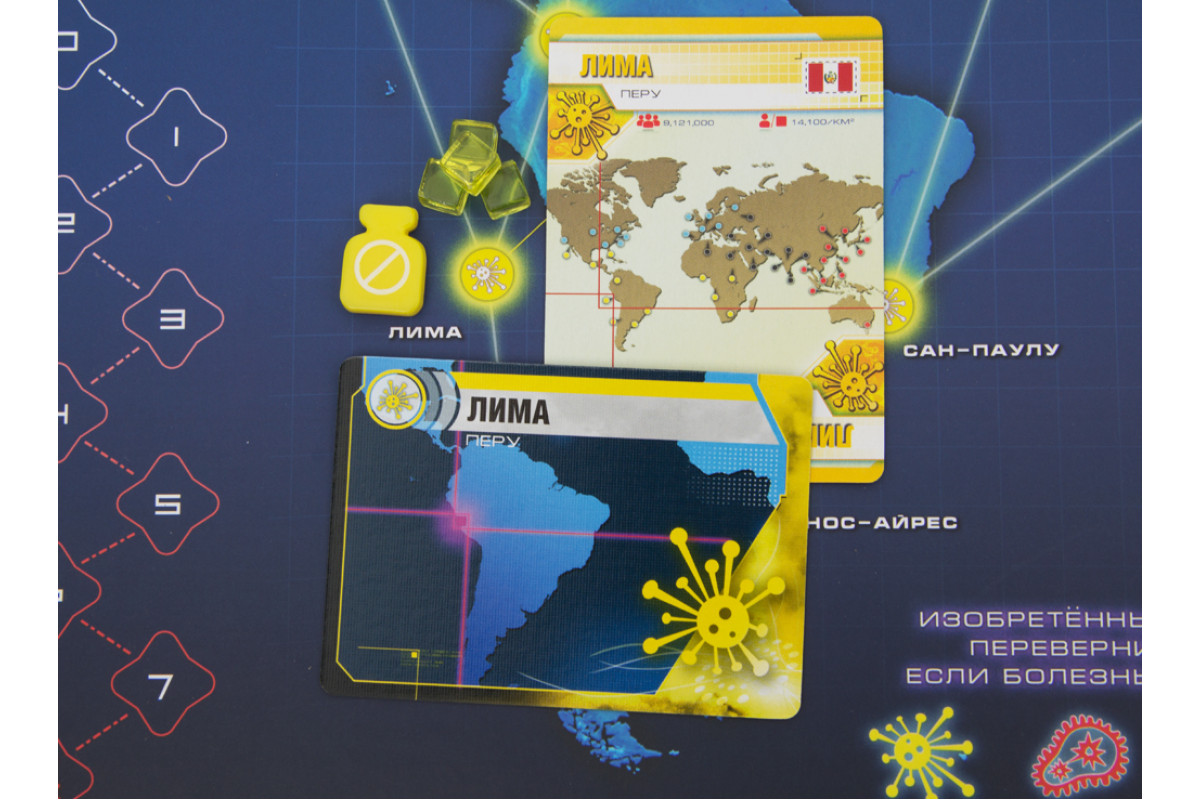 • Карти гравців - 59 шт (48 карт міст, 6 карт епідемій, 5 карт подій)